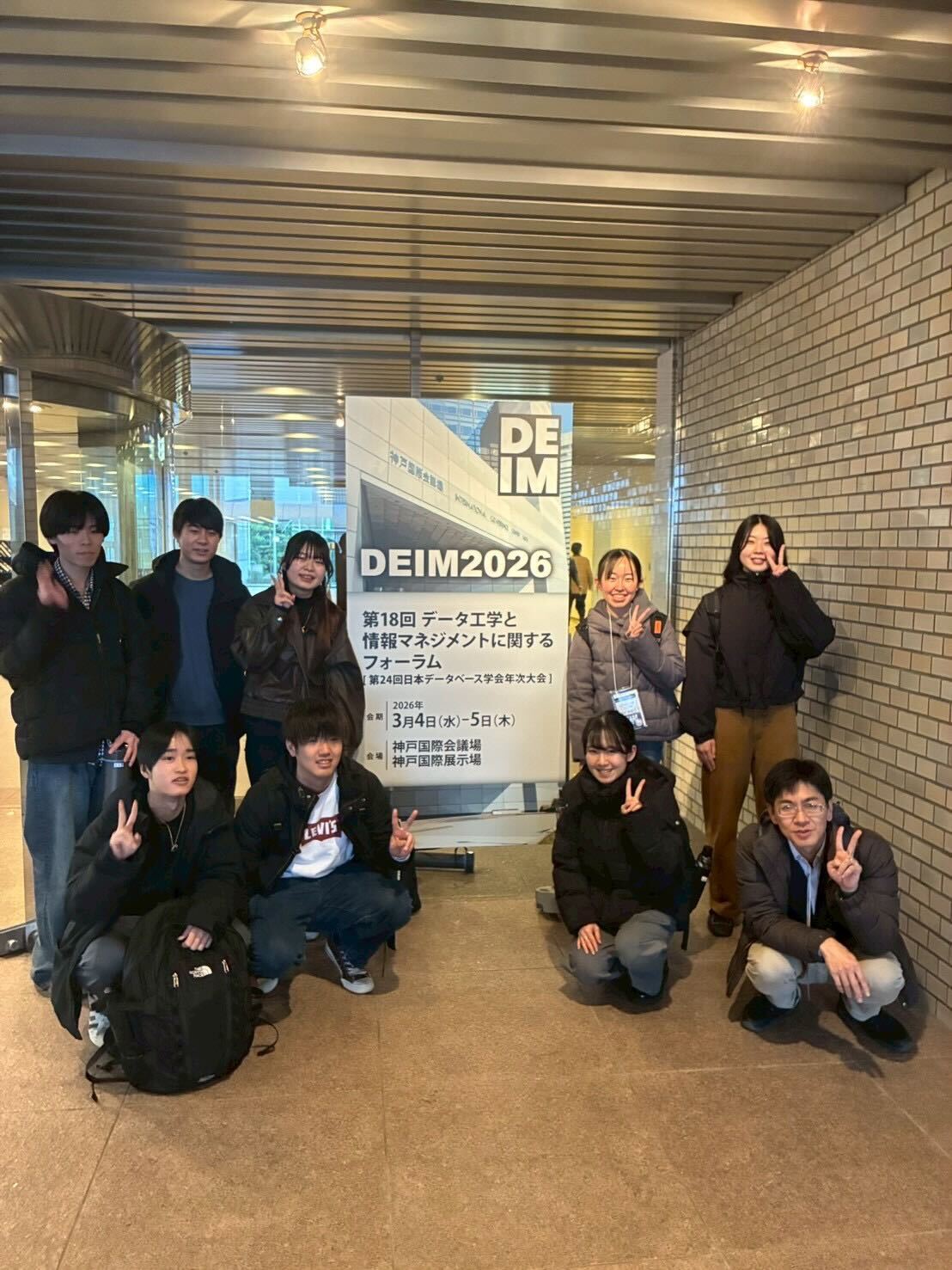 2026年2月28日から3月5日にかけて、オンラインおよび神戸国際会議場・展示場にて開催された第18回データ工学と情報マネジメントに関するフォーラム(DEIM2026)で、山本研究室のメンバー8名が発表しました。